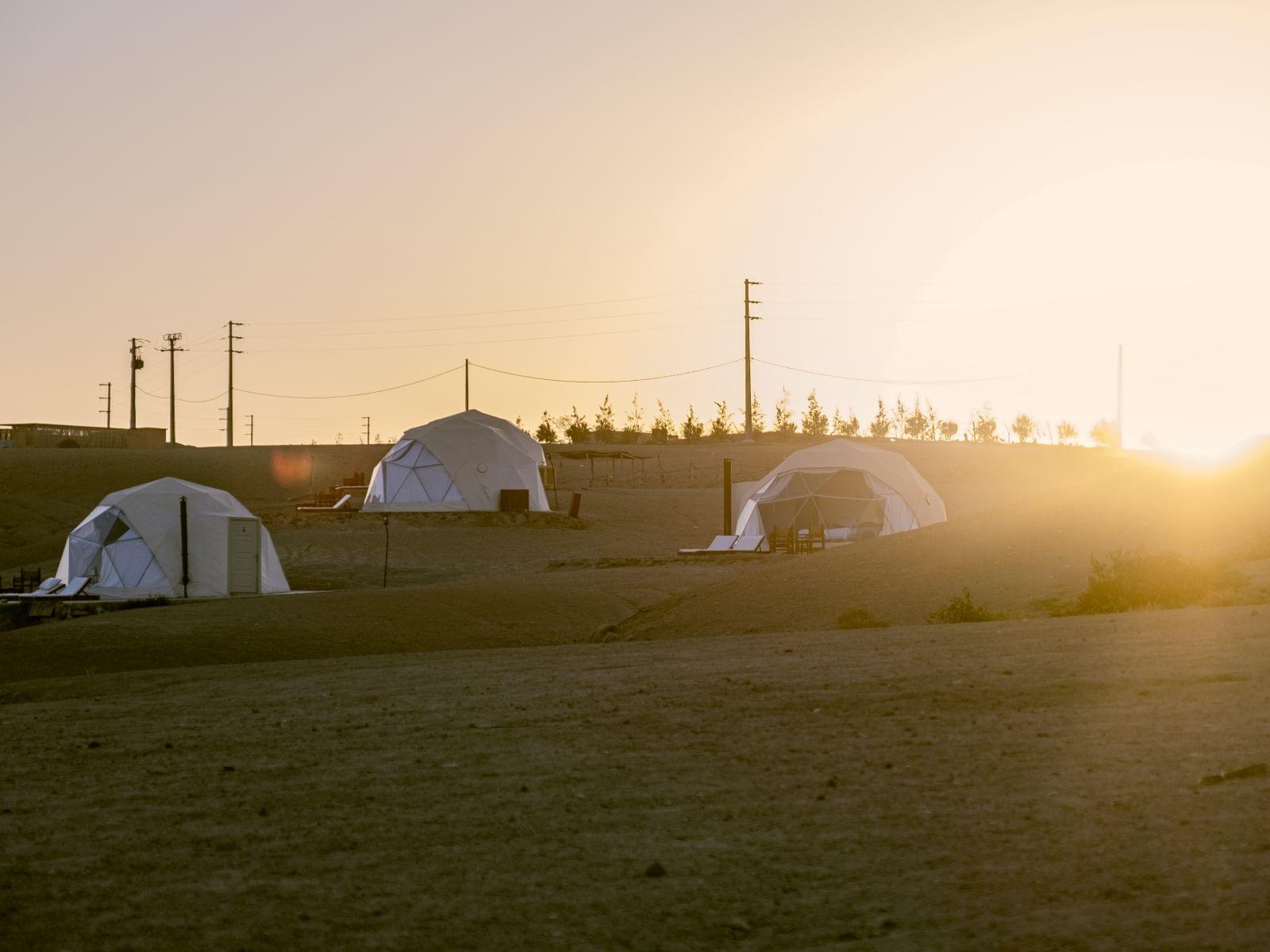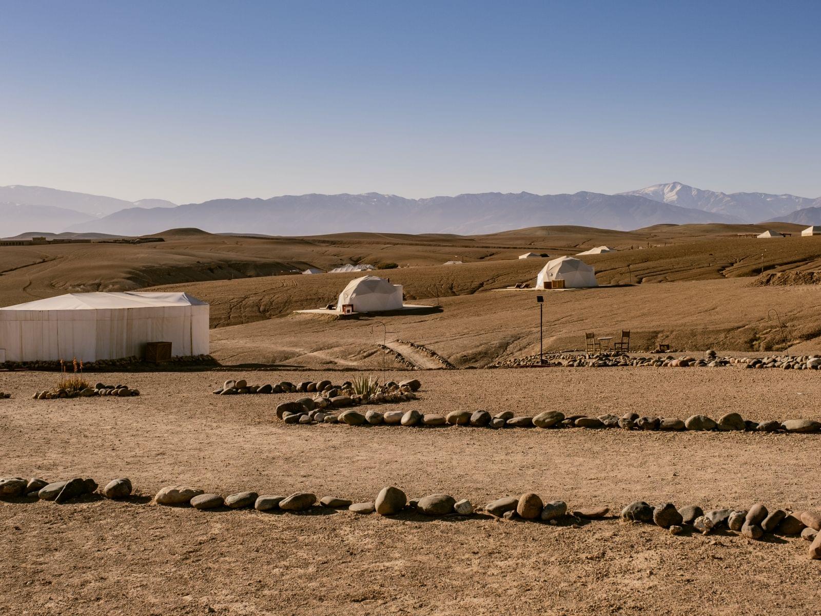 Nach einem entspannten Frühstück wurden wir an den Stadttoren von Essaouira abgeholt, um unsere Reise zum Emeraude Luxury Camp in der Agafay-Wüste anzutreten. Die rund dreistündige Fahrt führte uns durch abwechslungsreiche Landschaften – von den Weiten des Atlantiks über sanfte Hügel bis hin zu kargen Wüstenabschnitten. Ein kurzer Stopp auf halber Strecke bot die Gelegenheit, sich mit Snacks und Getränken zu versorgen. Je näher wir der Wüste kamen, desto holpriger wurde die Straße, doch der Anblick von Kamelen, Wüstencamps und vorbeiziehenden Quads entschädigte für die rumpelige Fahrt. Die Vorfreude auf eine Nacht inmitten dieser spektakulären Kulisse wuchs mit jedem Kilometer.