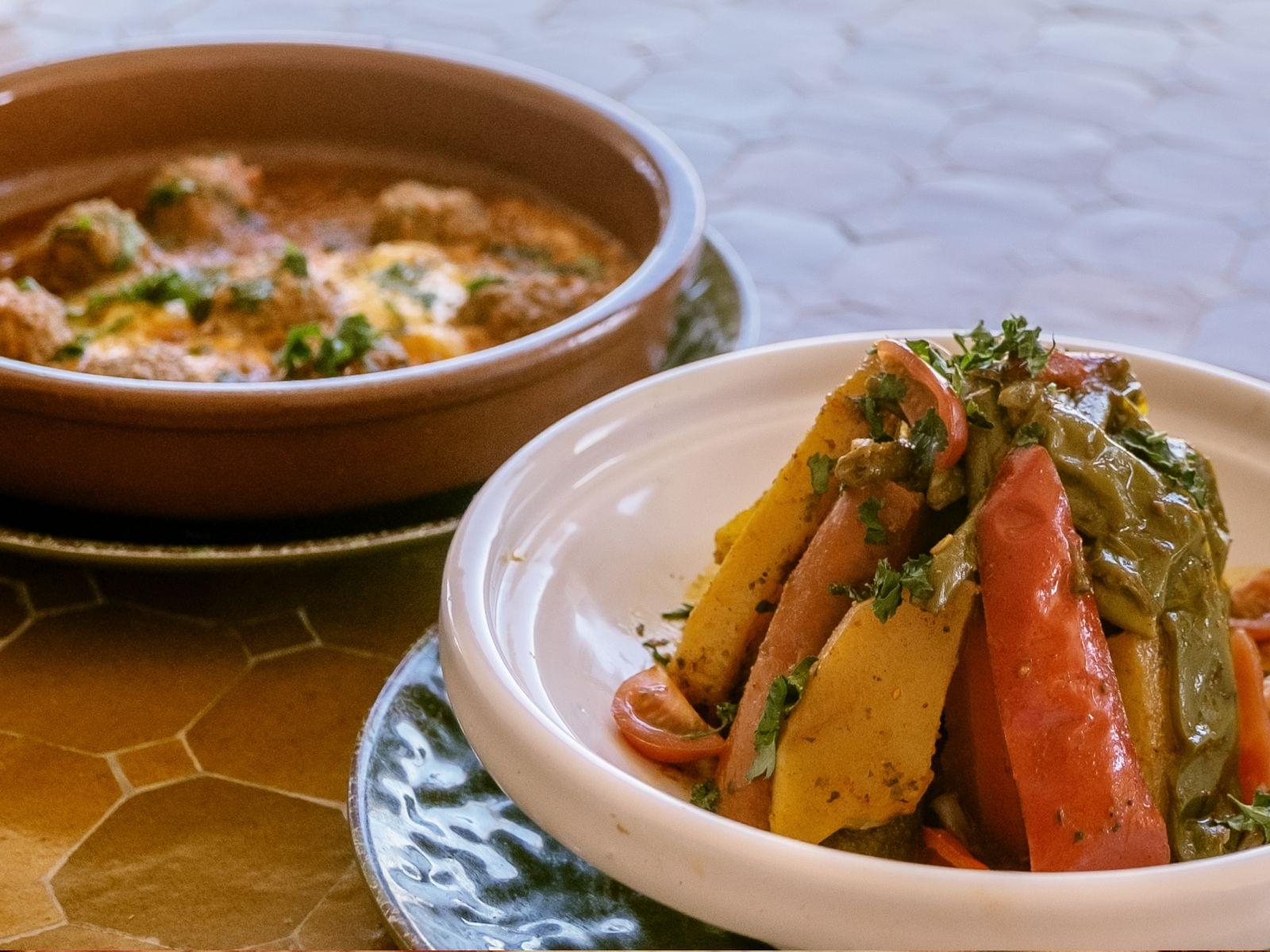 Am Camp angekommen, wurden wir herzlich empfangen und zu unserem Zelt geführt. Unser „Luxury Tent“ überraschte uns mit seinen großzügigen Räumlichkeiten, einem privaten Badezimmer und einer Klimaanlage, die auch als Heizung diente – perfekter Komfort für eine Nacht in der Wüste. Der Blick auf das majestätische Atlasgebirge verstärkte das Gefühl von Abgeschiedenheit und Ruhe. Im großen Restaurantzelt des Camps erwartete uns ein leckeres Mittagessen: frische marokkanische Salate, verschiedene Tajine-Gerichte und süße Desserts, die mit ihrem intensiven Geschmack und der traditionellen Zubereitung ein echtes Highlight waren. Während wir aßen, ließ sich bereits erahnen, dass uns hier ein ganz besonderes Erlebnis erwartete.